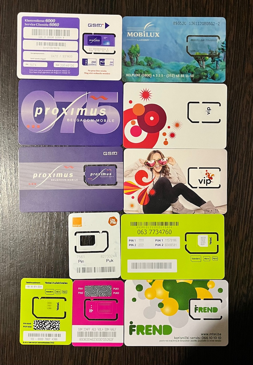 Продолжаем очень крутой подборкой европейских симок, среди которых редкие старые экземпляры, вишенкой из которых является полноценная сим-карта Proximus - 3 сим Proximus - Бельгия - Orange - Бельгия - Yettel - Венгрия - T-mobile - Венгрия - Mobilux - Люксембург -Vip - Сербия - Vip - Хорватия - Yettel - Сербия - Frend(Mtel) - Босния и Герцеговина https://t.me/sim_kardsfan