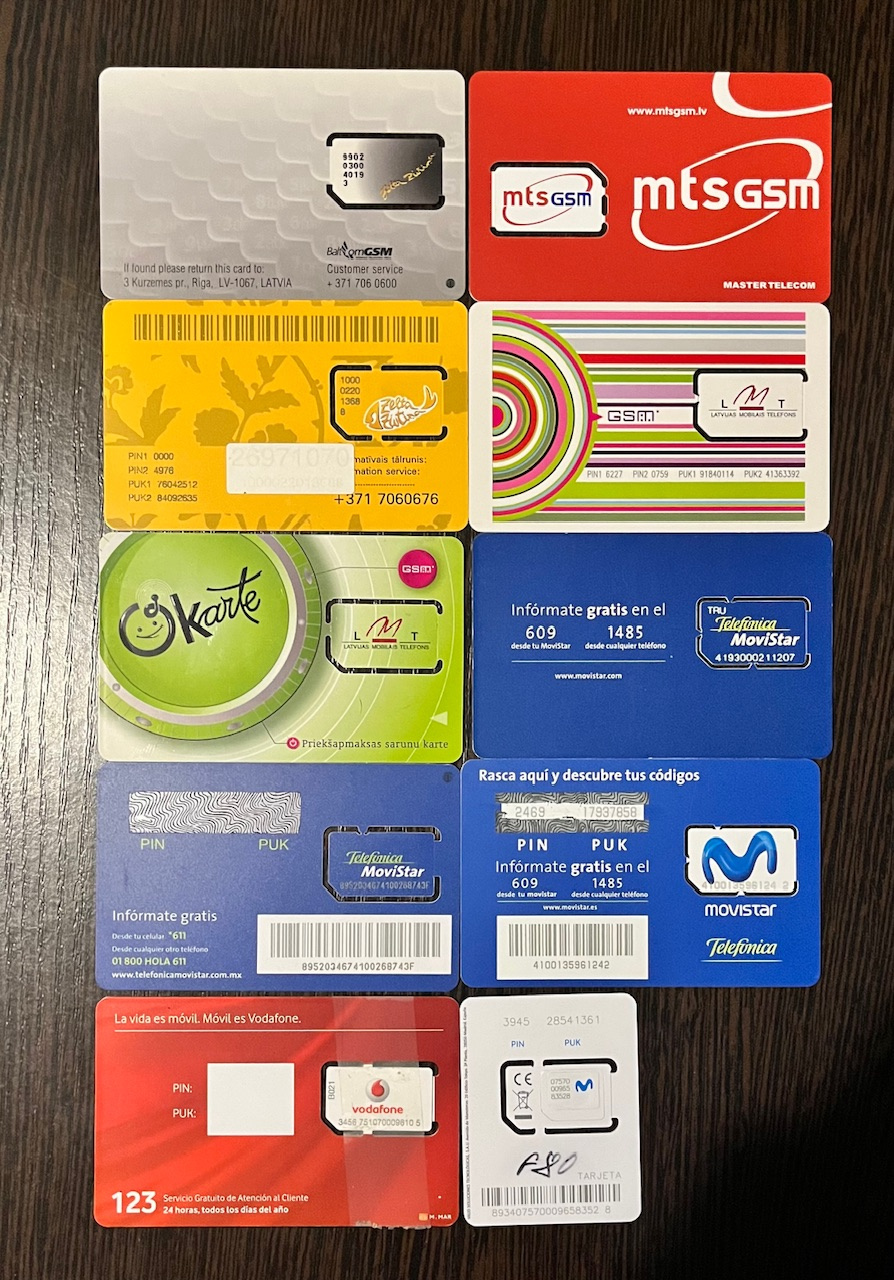 Поехали дальше - 2 сим Zelta Zivtina(Tele2) - Латвия - MTSGSM - Латвия - 2 сим LMT - Латвия - 3 сим Movistar - Испания - Vodafone - Испания - Movistar - Мексика https://t.me/sim_kardsfan