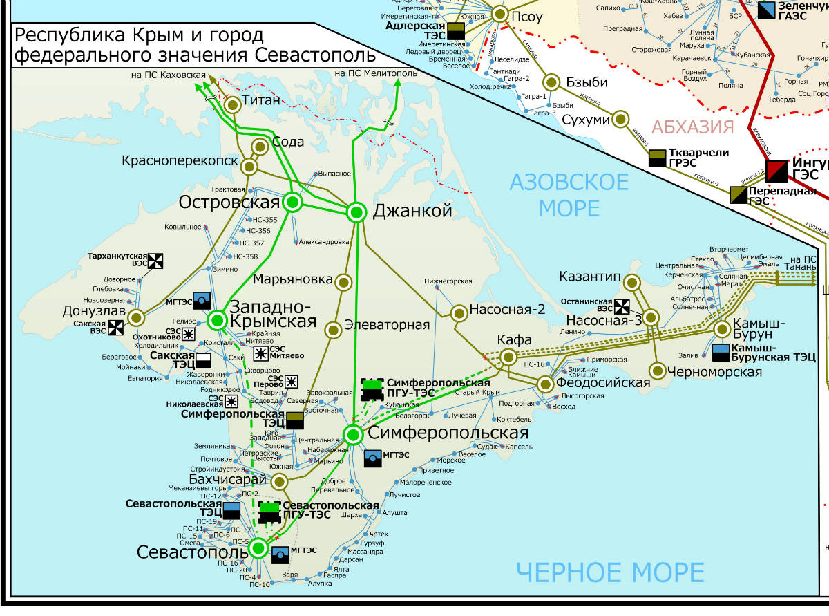 Есть ещё всякие OpenStreet map ... А на Вашей схеме от симферопольской ПС вниз веточка к иконке с вентилятором - это что ?