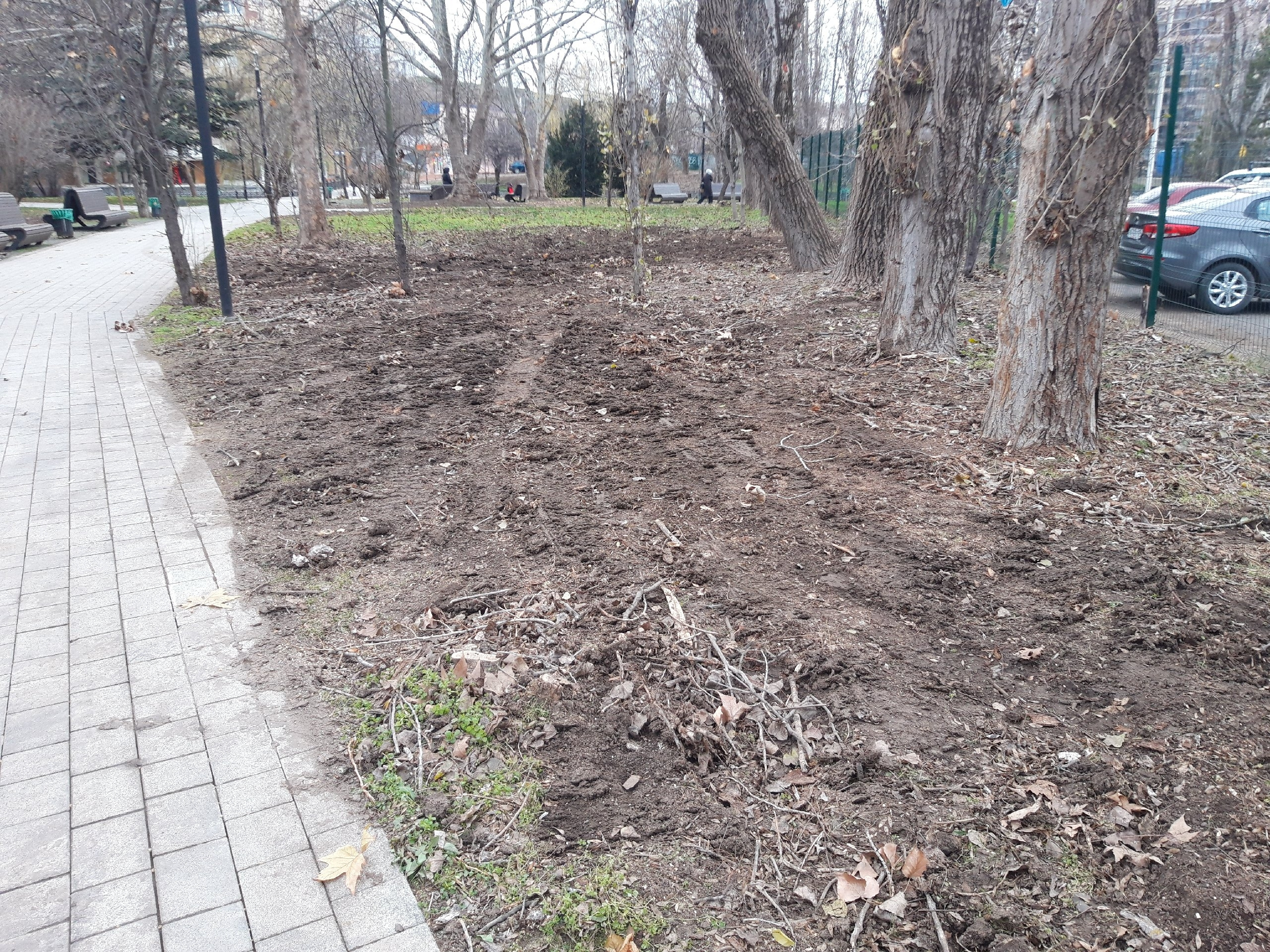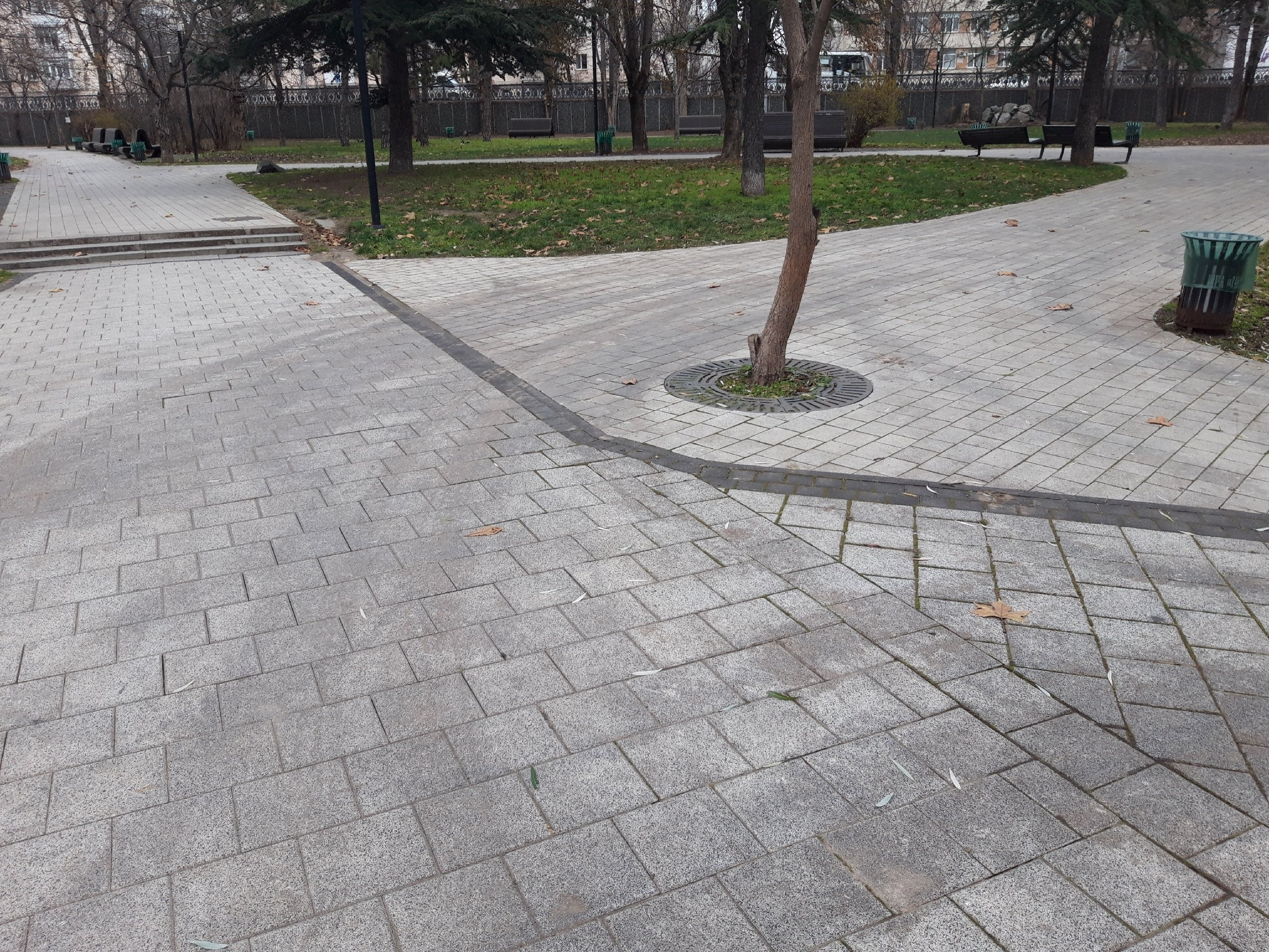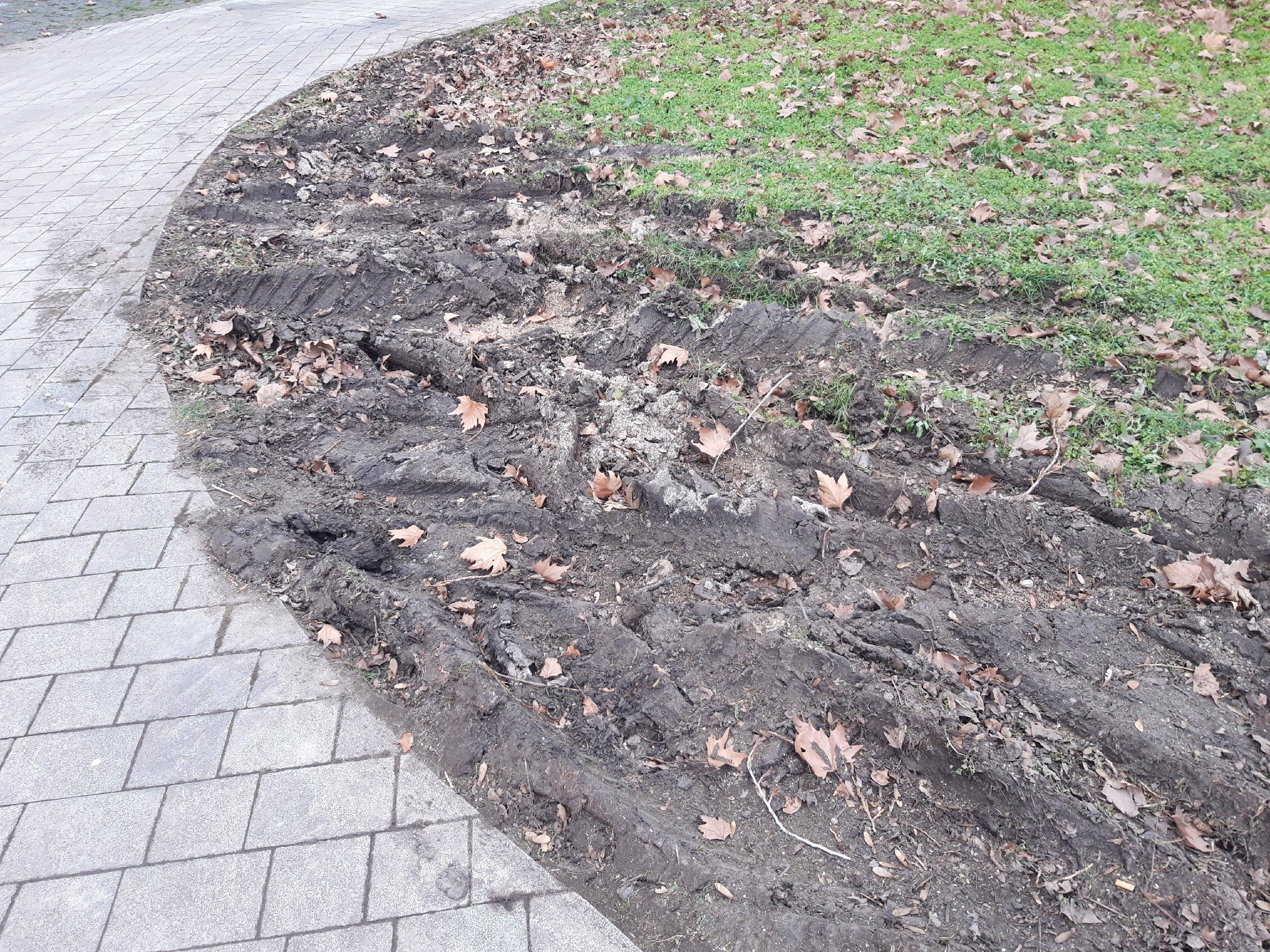Помните, я обещал фотки из изуродованного топпингистами сквера? Вот. Сломано 3 скамейки. На первом фото видно, что скамейка притёрта колесом автомобиля, в результате чего сломана. На втором фото скамейку сломали, скорее всего, подметальной машиной. Да, как ни странно, приехала машина убрать грязюку. Качество уборки вы ещё увидите ниже, а сломанная скамейка вот она. Третью скамейку отломали вовсе. И приставили к обтоппингованному тополю. Это так мило. Вот здесь когда-то был газон. Этот рулонный газон (я сам лично видел) укладывали женщины стоя на коленях. Тяжёлый труд и куча денег. Продавленная плитка. Много мест: Грязюка, натасканная колесами: А вот тут увлеклись. Ну, подумаешь, одним тополем меньше: Качество уборки)) Ну что я вам скажу, сквер нужно опять закрывать на реконструкцию. Сколько убытка принесли эти пилильщики? За чей счёт будет проводиться восстановление уничтоженного? -