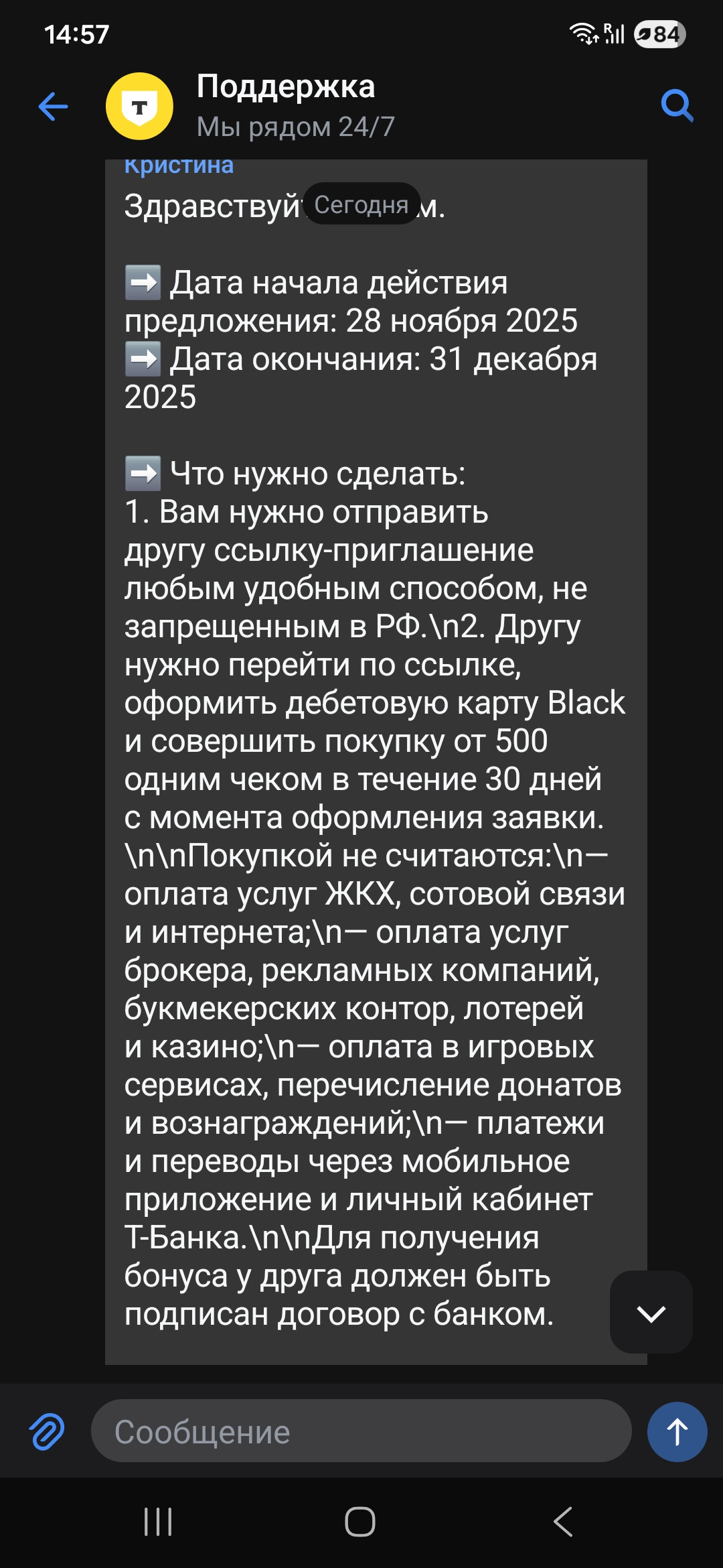 Условия для дебетовки, кредитку не берите пока, даже если ее вам будут предлагать (а предлагать точно будут, по кредитке в след году тоже буду пересылать 1000р за открытие)