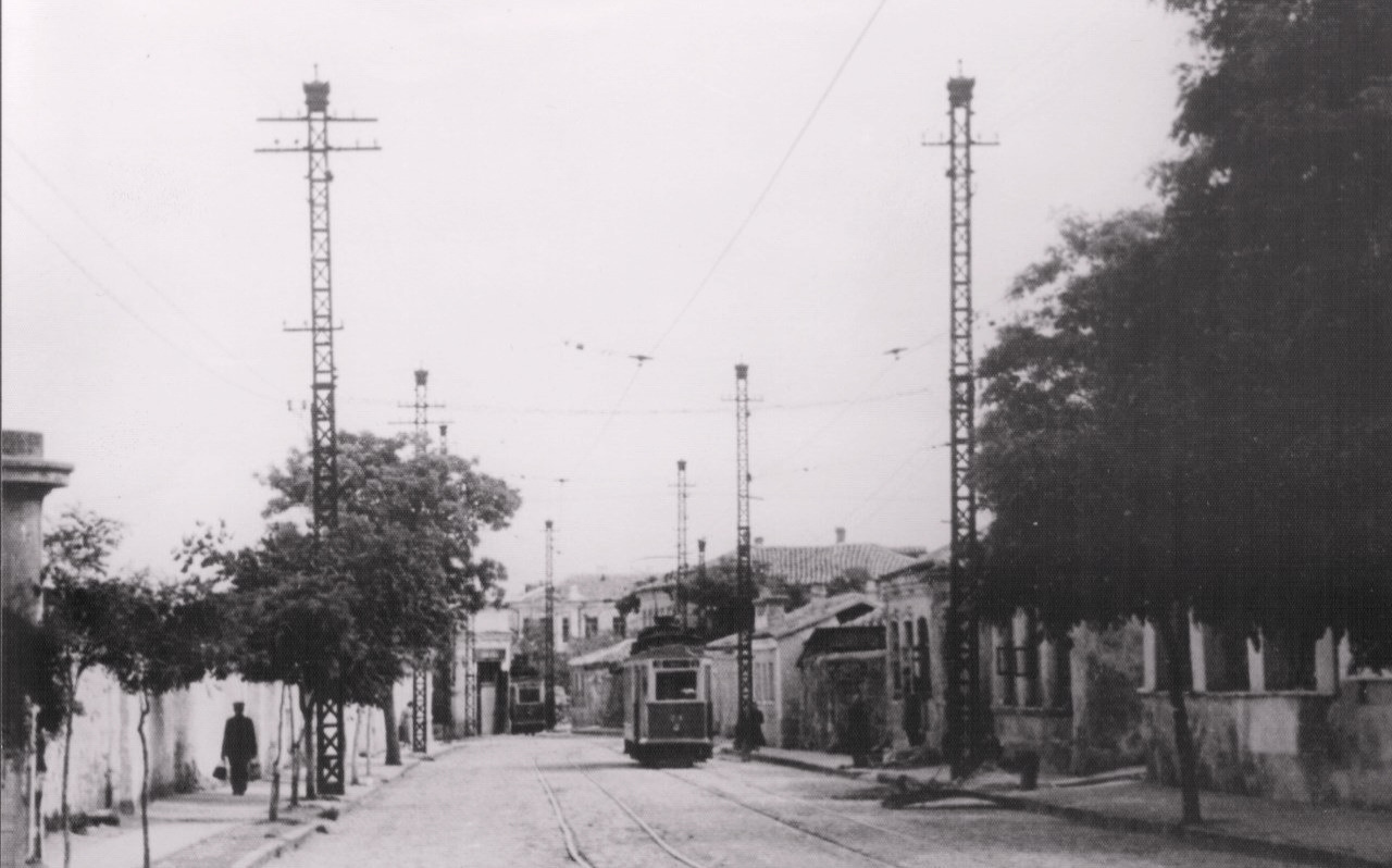 Похоже на оккупацию - контактный провод и литые решетки в колоннаде уже стырены немецкими туристами, телефонные провода невысоко навешены на трамвайные столбы.