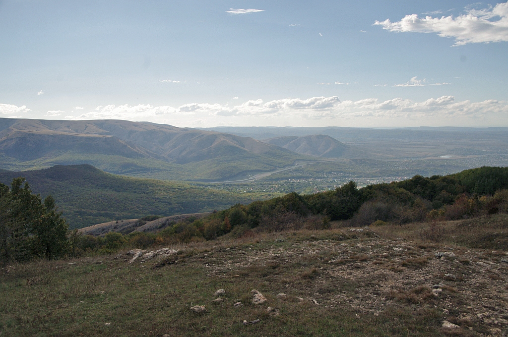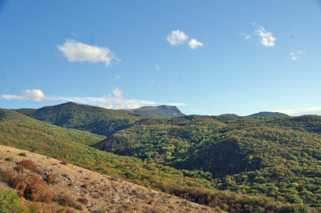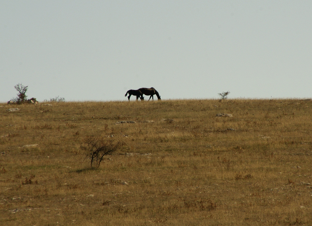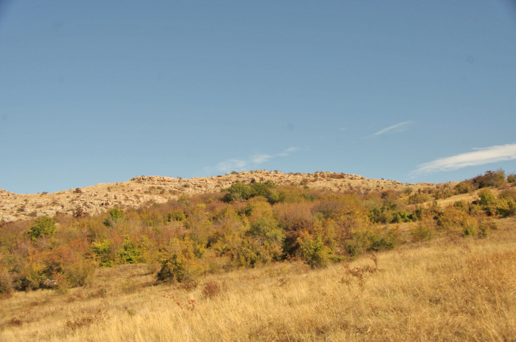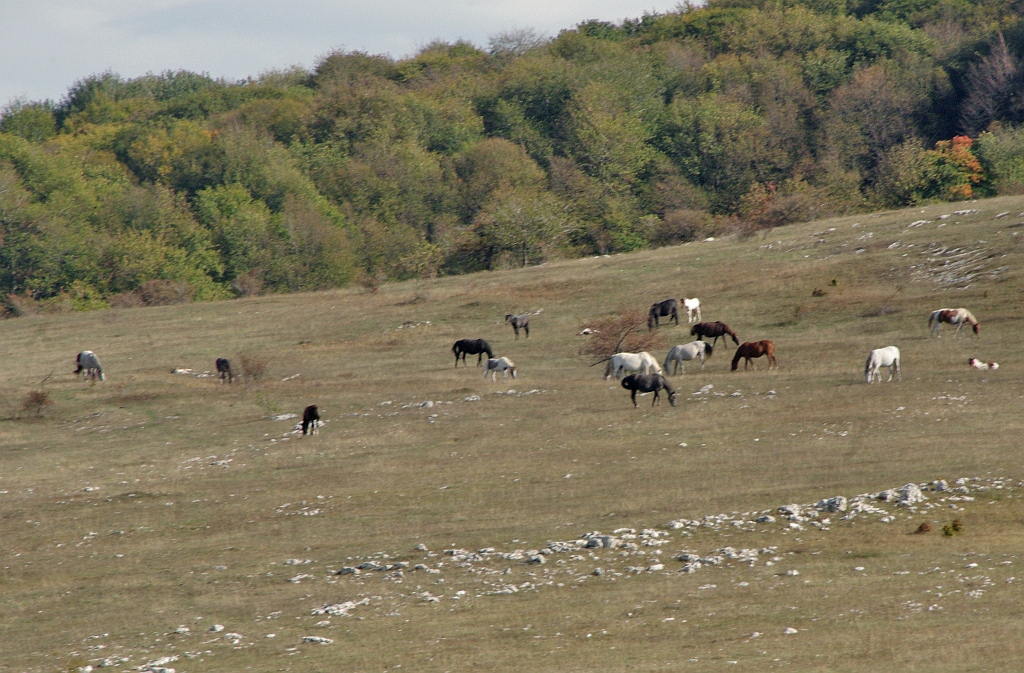 Добрый день. В минувшую субботу прогулялись, как обычно на ......... ... Долгоруковскую яйлу (подъём у КизилКобы, спуск у Ча(е)лбаша). Маленький фотозарисовочный отчётик. Начало подЪёма. Тур, похожий на кого-то. Вид на долину - застроили коттттеджами ... Спуск с нижнего плато Чатырдага по Ишачке. Непонятно как пересечь построенную объездную... Если кто-нибудь проходил там ПОСЛЕ ОТКРЫТИЯ ОБЪЕЗДНОЙ - поделитесь, пожалуйста. Ещё немного и край плато ... Вид с края яйлы в сторону ЧатырДага. Вот и БазарОба. С другой стороны того же "Базара". Чеснок - он такой один. Стоит сосна с предсосенками... Немножко красно-жёлто-зелёного... Цветочки (адын штук). На самом деле на яйле их достаточно. Вид с края плато перед спуском. Родник на спуске - воды очень мало, но течёт, не спеша можно набрать ... На яйле в этом году большой урожай боярышника восточного (обычных боярышников всегда полно)., а вот такого ...... Он намного крупнее, вкуснее и в нём мяса много. Как всегда по пути подходим к знакомым деревьям... Кто-то поклевал ... Грибы тоже имеются - шампиньоны, зонтики, головачи . Взяли немножко шампиньонов - по пакетику, а потом просто проходили не собирая ... Ну, и лошары как всегда ... И привет из каменного века . Резюме. Погодка была прекрасна (весь день проходил в одних шортах), ветра практически не было. Придётся непременно повторить ...