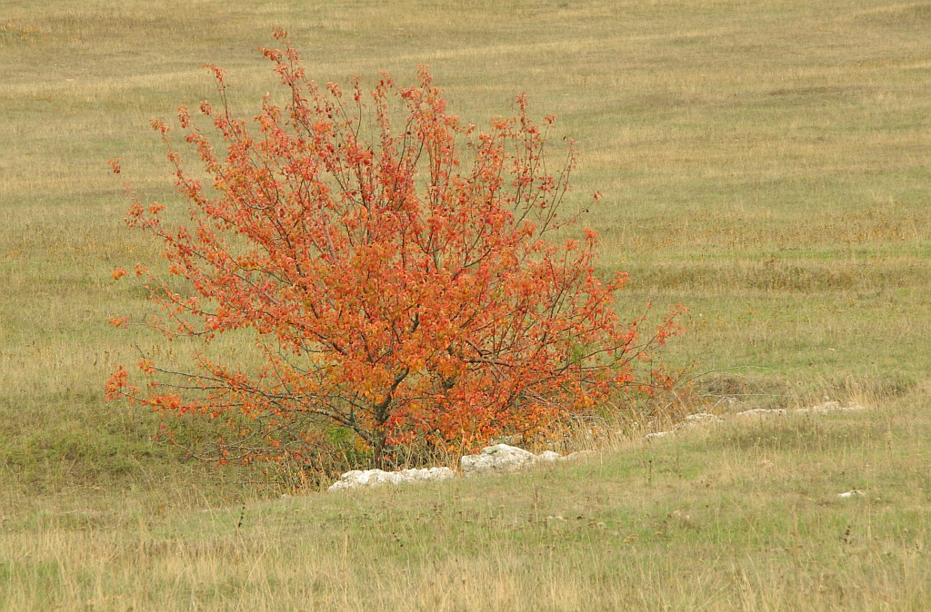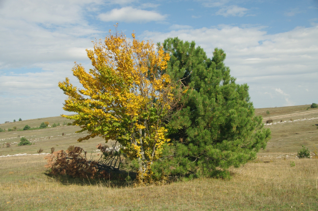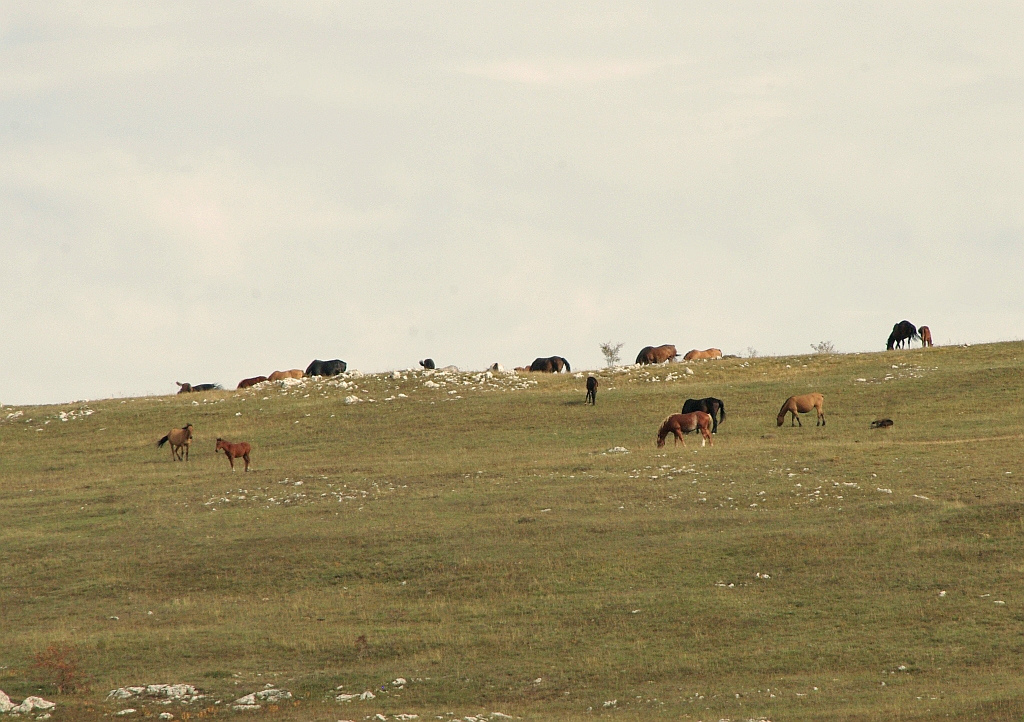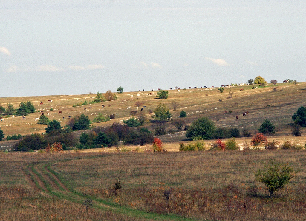 Добрый день. В минувшую субботу прогулялись, как обычно на ......... ... Долгоруковскую яйлу (подъём у КизилКобы, спуск у Ча(е)лбаша). Маленький фотозарисовочный отчётик. Начало подЪёма. Тур, похожий на кого-то. Вид на долину - застроили коттттеджами ... Спуск с нижнего плато Чатырдага по Ишачке. Непонятно как пересечь построенную объездную... Если кто-нибудь проходил там ПОСЛЕ ОТКРЫТИЯ ОБЪЕЗДНОЙ - поделитесь, пожалуйста. Ещё немного и край плато ... Вид с края яйлы в сторону ЧатырДага. Вот и БазарОба. С другой стороны того же "Базара". Чеснок - он такой один. Стоит сосна с предсосенками... Немножко красно-жёлто-зелёного... Цветочки (адын штук). На самом деле на яйле их достаточно. Вид с края плато перед спуском. Родник на спуске - воды очень мало, но течёт, не спеша можно набрать ... На яйле в этом году большой урожай боярышника восточного (обычных боярышников всегда полно)., а вот такого ...... Он намного крупнее, вкуснее и в нём мяса много. Как всегда по пути подходим к знакомым деревьям... Кто-то поклевал ... Грибы тоже имеются - шампиньоны, зонтики, головачи . Взяли немножко шампиньонов - по пакетику, а потом просто проходили не собирая ... Ну, и лошары как всегда ... И привет из каменного века . Резюме. Погодка была прекрасна (весь день проходил в одних шортах), ветра практически не было. Придётся непременно повторить ...