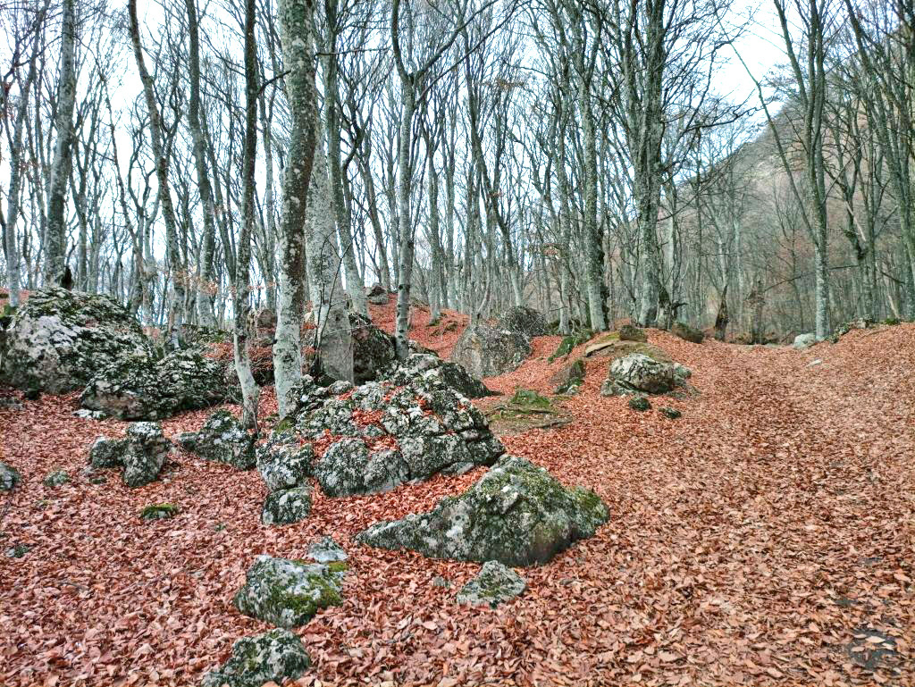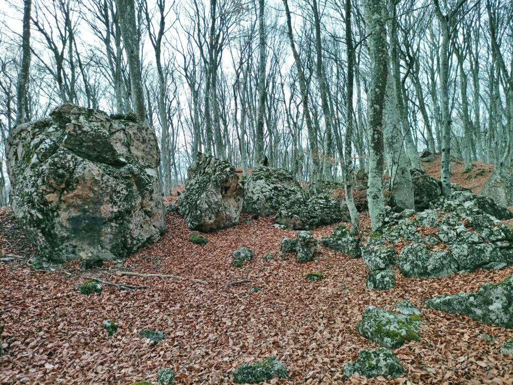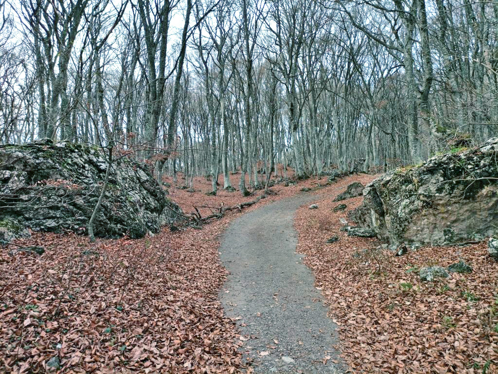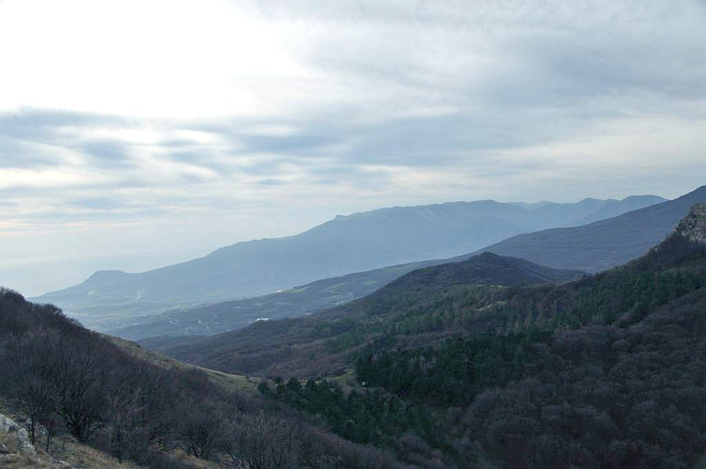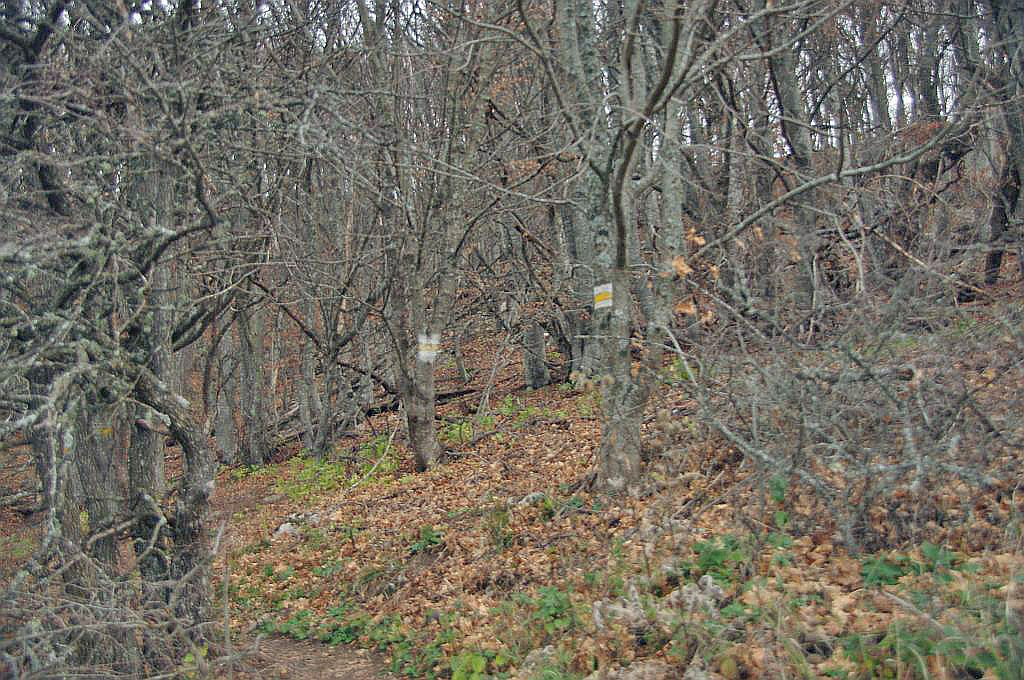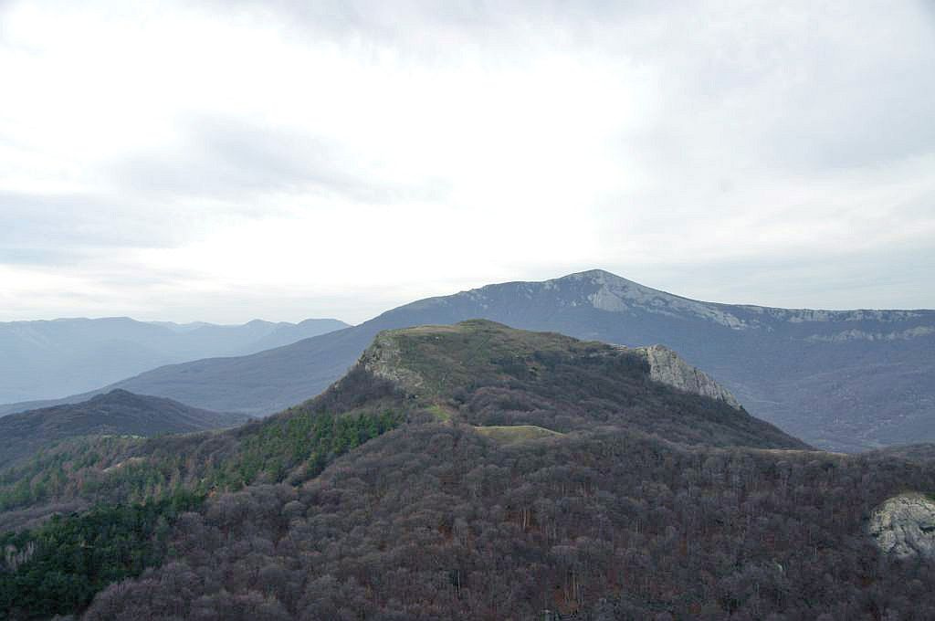 Добрый день. В минувшую субботу (22 ноября), воспользовавшись необычайным теплом, совершил небольшой походик по маршруту Агнарский перевал - Перевальное через Северную Демерджи, Курлюк Баш, г. Замана, Буковый кордон, Малиновую балку. От перевала до ...... Расставили указатели - весьма удобно. Памятник на месте, побелили его - мне не понравилось..... Скалы Эльх Кая, я туда не поднимался, шёл по дороге дабы заглянуть на родник. Дорога, как и всегда, довольно живописна. Вот и родник Индек Чокрак. Недалеко от него седловина (перевал Фуна) между Северной Демерджи и Пакхал Кая. Отсюда открывается прекрасный вид на алуштинскую долину и скалы Северной Демерджи, но сегодня облачно и виды не совсем красочны. Маркированная тропа со столбиками-указателями уходит в сторону Сарпа Кая, туда же уходит и группа туристов ... А я , вняв предупреждениям о клещах и купине, пойду налево вверх но не пещере, как зазывает указатель... Тропа натоптана и маркирована жёлтым. Пакхал Кая. Вид на седловину-перевал и на нижнее плато Чатыр Дага. А вот и старая знакомая сосна ... Тур. Вновь седловина и Пакхал Кая - уже пониже будет ... Наверху кто-то за мной наблюдает - ворон, наверное. Справа и слева скалы. Ага - натоптанная маркированная тропинка ушла вниз - к пещере Ман, ну а мне карабкаться дальше ... Наконец край плато Северной Демерджи. На плато лошары, это единственный встретившийся мне табун. А это привет из весны - прострел / сон трава. Впереди яйла. Столбик прлёг отдохнуть. Вид на верховья Курлюк Су. И взгляд назад, выход на плато там, на горизонте ... Вдоль края плато в сторону ущелья с речкой Курлюк Су и источниками Курлюк Баш тянется скальная стенка с множеством разрывов. В один из них я ныряю - быстрее спуститься напрямик, без тропы/дороги, но вначале нужно преодолеть какие-то дебри - нагромождение камней, веток, папоротников, маморотников и т.п.... Впереди кто-то с шумом метнулся по склону, но пока я обходил очередной большой булыжник, оно убежало - косуля, скорее всего. Склон довольно крутой, но спускаться не сложно. Внизу всё как обычно. Все источники работают, воды полно, много шиповника. Далее неприятный крутой подЪём на противоположный склон ущелья в сторону горы Замана. Вот и верх. Далее хотелось пройти к роднику Олений и по руслу Суботхана, но ... Там устроили загонную охоту. Не понимаю как можно найти зверя в столь посещаемом месте + дорога, по которой то и дело проезжают джиперы, мотоциклисты, квадрациклисты ... Ну, охотникам виднее. Пришлось до Букового кордона пройти по дороге, а потом обычный спуск по Малиновой балке. В целом походик удался, погодка не подвела, хоть и было пасмурно, но жарко. Пройдено 21...23 км. Нужно будет повторить.